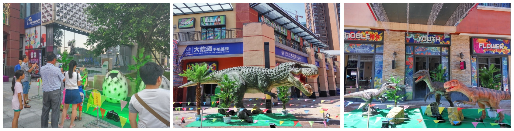 6月18日,由自貢藝思特恐龍彩燈科技有限公司與萬達金街聯手合作的“慶萬達金街周年慶——重返侏羅紀”恐龍展在萬達金街盛大開展,逼真的形態、震撼的吼叫、變化的動作為商場吸引了大批顧客駐足參觀、拍照,現場游客嘖嘖稱奇,活動取得圓滿成功。