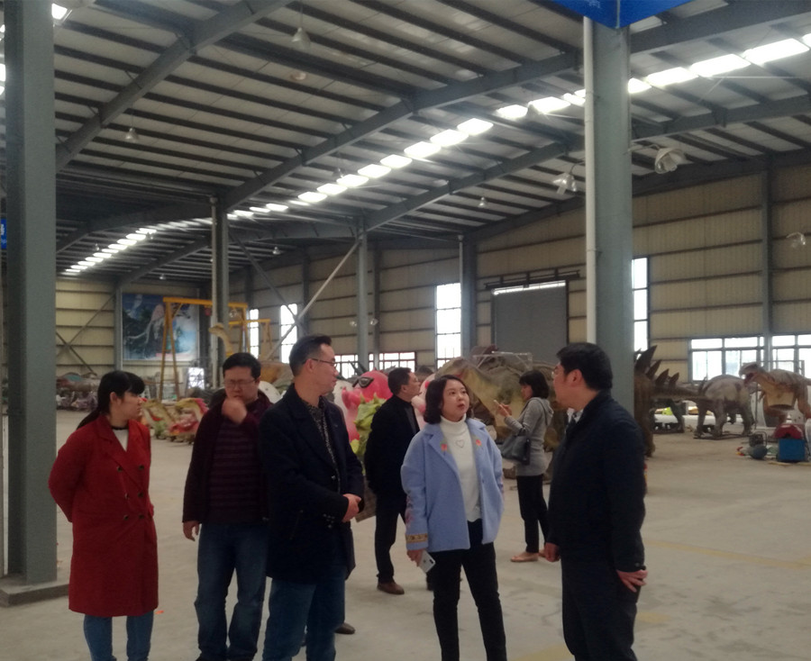 吳曉軍一行在公司領導的陪同下參觀了東方彩燈出口基地,詳細了解了境外燈展燈品、仿真恐龍的制作工藝以及海運的相關情況。隨后,吳曉軍一行來到燈貿集團會議室,聽取東方彩燈“走出去”的情況匯報。集團公司董事長劉婭就公司“東方彩燈·點亮世界”全球巡展項目、“燈會+”模式以及境外展出所面臨的困境作了全面介紹和匯報。