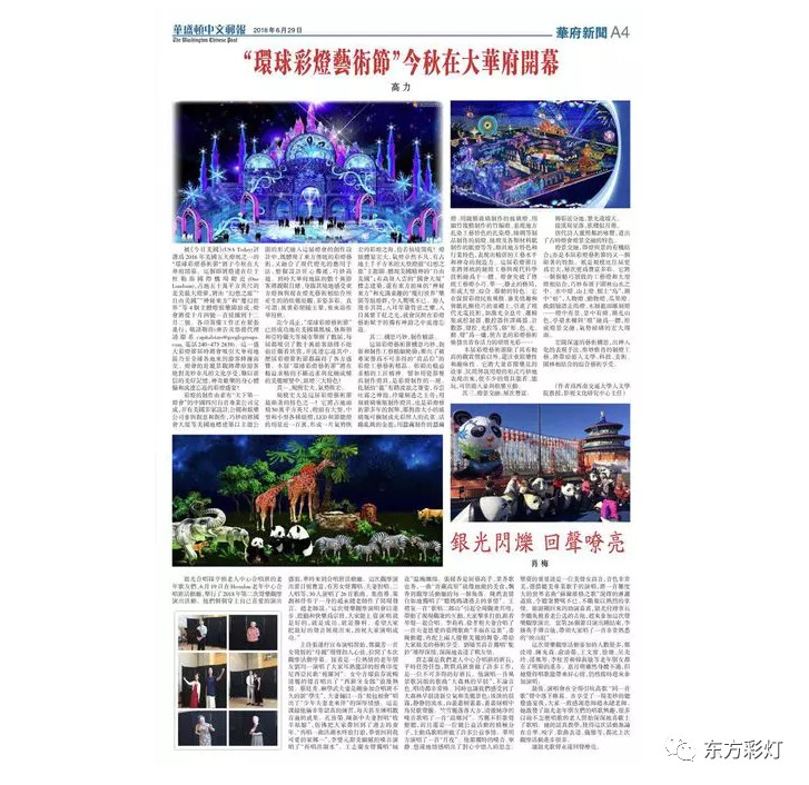 為推進(jìn)中國傳統(tǒng)彩燈文化的國際傳播能力,講好中國故事,展現(xiàn)真實(shí)、立體、全面的中國。自貢燈貿(mào)集團(tuán)股份有限公司“東方彩燈.點(diǎn)亮世界”全球巡展項(xiàng)目之--2018加拿大溫尼伯、溫哥華;美國華盛頓、圖森、菲尼克斯燈展已開啟大幕。近日,四川省文化產(chǎn)業(yè)商會(huì)對(duì)我公司2018北美系列外展進(jìn)行了專題報(bào)道。
