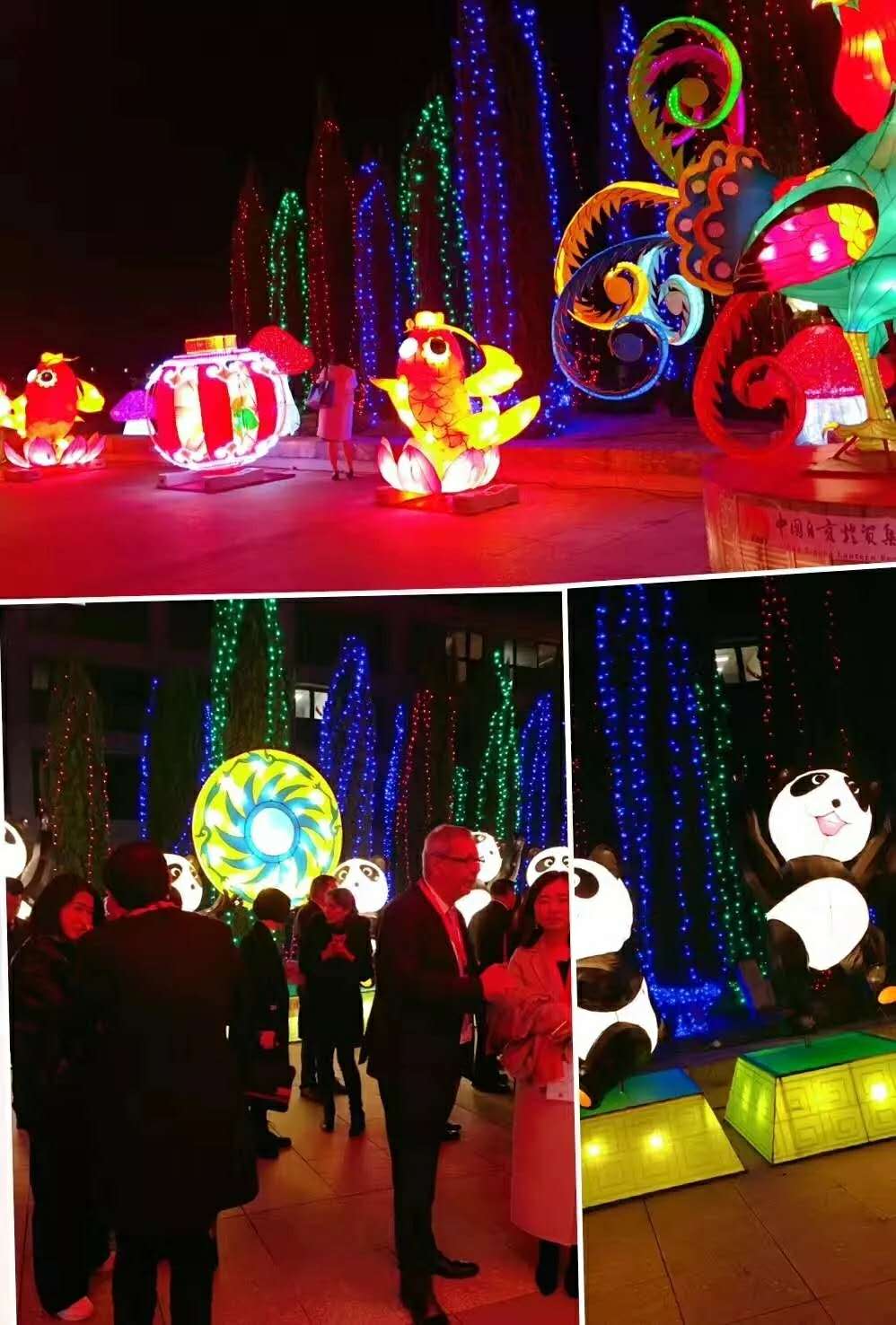為了此次論壇,自貢燈貿集團精心準備了一年之久,選取了最具有代表元素的《熊貓送禮》、《紅紅火火》、《友誼長存》等燈組,把活動現場裝扮成了色彩斑斕的世界,將會場氣氛營造的充滿濃濃的溫情和浪漫,不僅展現了悠久燦爛的蜀國文化,更突顯了地域風情。通過燈組展示,讓更多的友人了解四川、熱愛四川,和四川建立更緊密的國際友好合作關系!