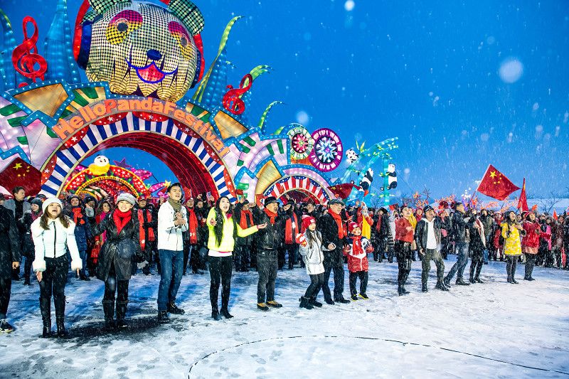 自貢燈貿集團承制的北美地區規模最大的彩燈盛會—“天下華燈”嘉年華(HelloPanda Festival)燈展場地于1月18日舉行了“點亮2022北京冬奧文化日活動中國駐紐約總領事黃屏大使和數千名當地民眾齊聚這里,通過千人快閃、慶典晚會和游園賞燈祝福北京冬奧。這也是2022北京冬奧會和冬殘奧會在海外開展的首個大型公眾宣傳活動。