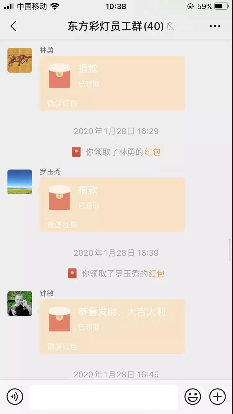 眾志成城,共克時(shí)艱。面對疫情,沒有人是一座孤島,我們隔絕病毒,但是絕對不隔離愛。在這場沒有硝煙的戰(zhàn)役里,東方彩燈作出迅速響應(yīng),密切關(guān)注疫情發(fā)展,大家一致研究決定向湖北省武漢人民伸出援助之手,公司和員工共計(jì)捐款近3萬元,共同對抗這場突如其來的疫情,以助力馳援武漢,守望相助,為武漢加油。