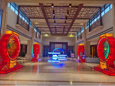 東方彩燈·時事新聞|東方燈品亮相第三屆自貢國際恐龍燈光節接待現場