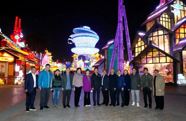 3月4日晚,李金生主席一行參觀了第27屆自貢國際恐龍燈會,調(diào)研團(tuán)成員被美輪美奐、流光溢彩、大氣磅礴的自貢燈會深深吸引,對我市彩燈文化傳承保護(hù)、彩燈產(chǎn)業(yè)發(fā)展給予了高度評價。