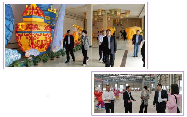 燈貿集團董事長劉婭、執行總裁陶建軍陪同調研團一行參觀了東方彩燈(出口)基地,觀摩彩燈制作過程,全面了解了彩燈工藝流程。